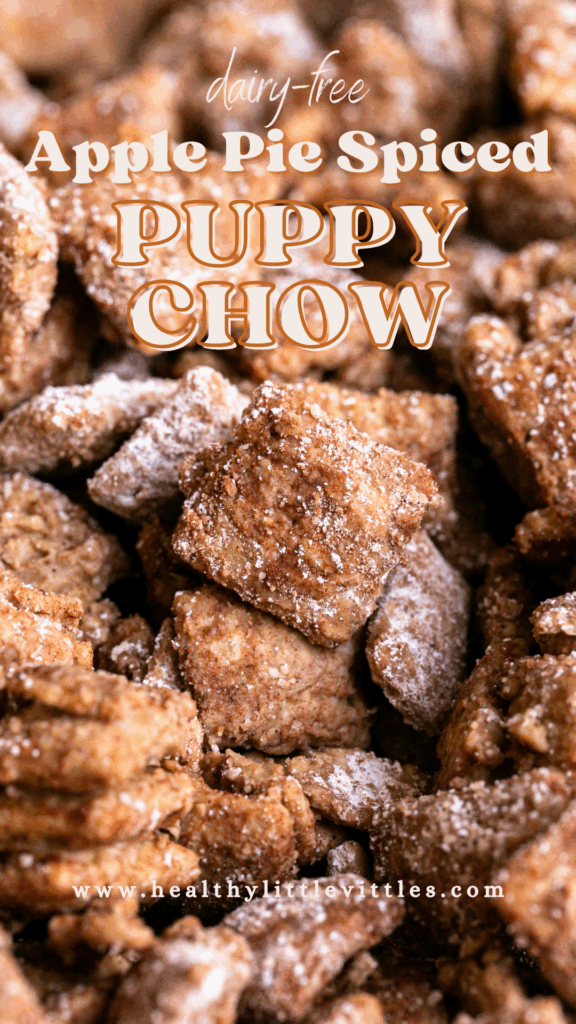 If you’ve ever had classic puppy chow (aka muddy buddies), you already know how dangerously snackable it is. Sweet, crunchy, and totally addictive—it’s the kind of treat you can’t just grab one handful of. But this time, we’re giving it a cozy seasonal upgrade with all the flavors of apple pie, minus the dairy, so everyone can enjoy! 🍎✨