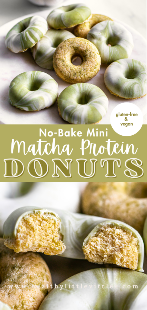 Made with almond flour, plant-based protein powder, matcha powder, and dairy-free white chocolate, these mini donuts are ideal as a quick morning treat, post-workout snack, afternoon pick-me-up, or an after dinner dessert bite.
