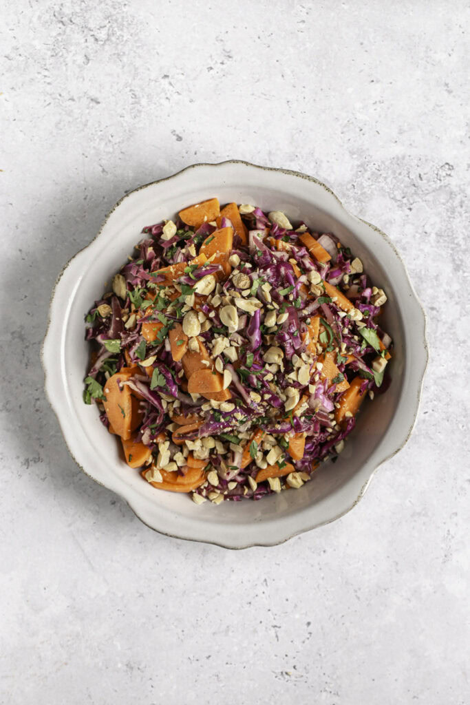 💡If you’re making this slaw ahead of time, keep peanuts separate until serving to maintain crunch.