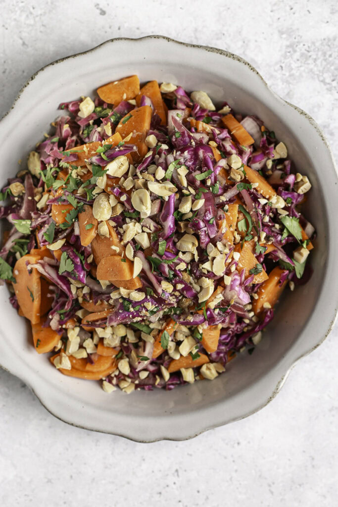 Quick & Crunchy Red Cabbage Carrot Cilantro Slaw with Roasted Peanuts (Pickled Option)