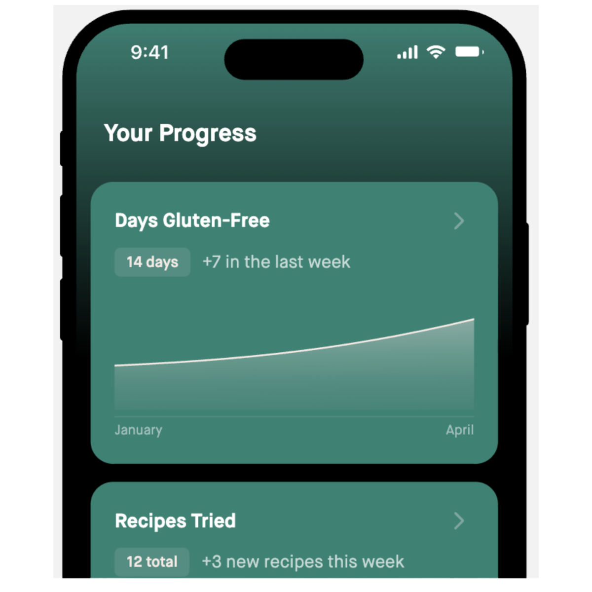 Monitor your gluten-free journey, celebrate milestones, and see your health and confidence improve with every step.
